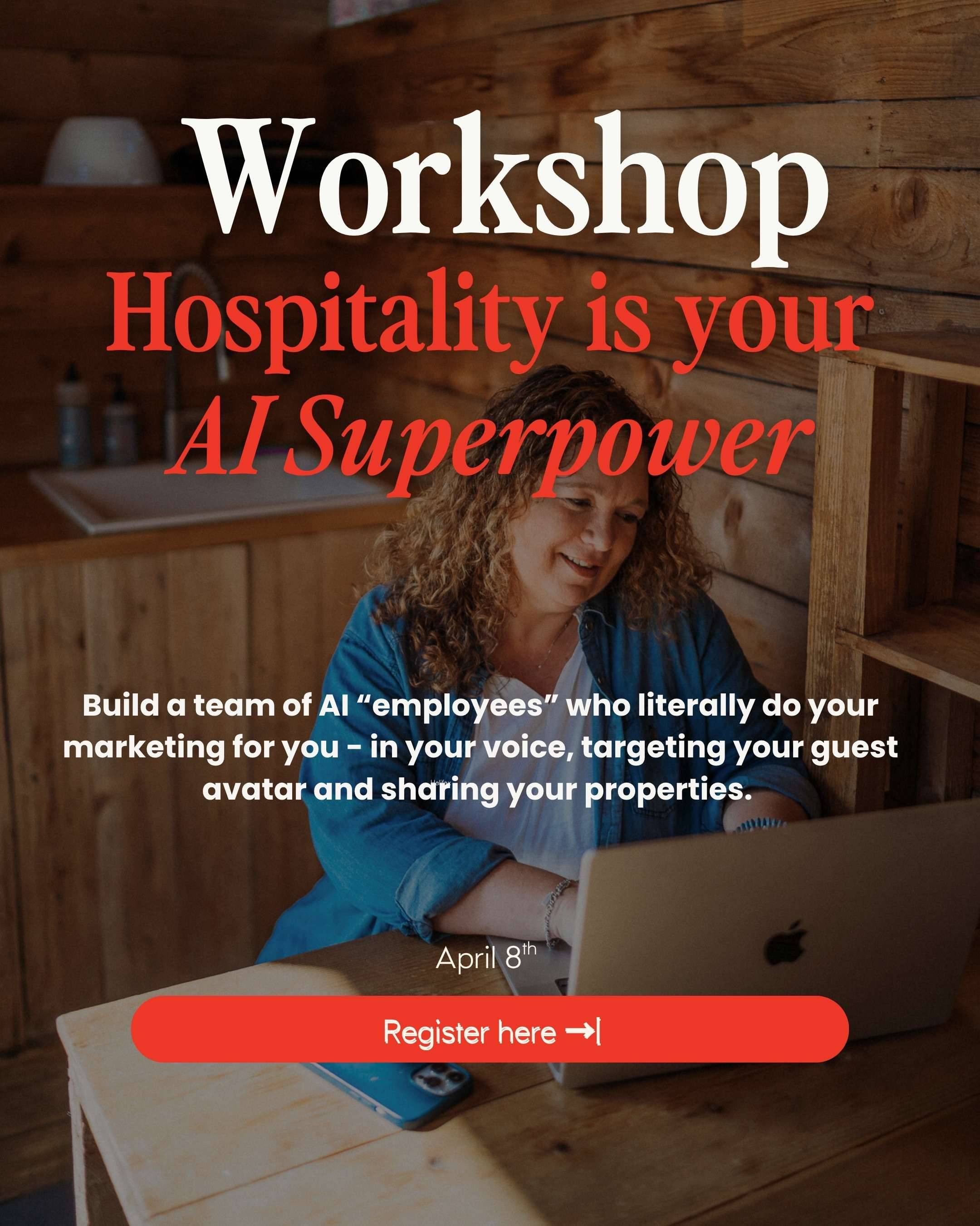 I can't wait to tell you more - sign up for the free workshop: Hospitality Is Your AI Superpower to see it in action. (learn more below)